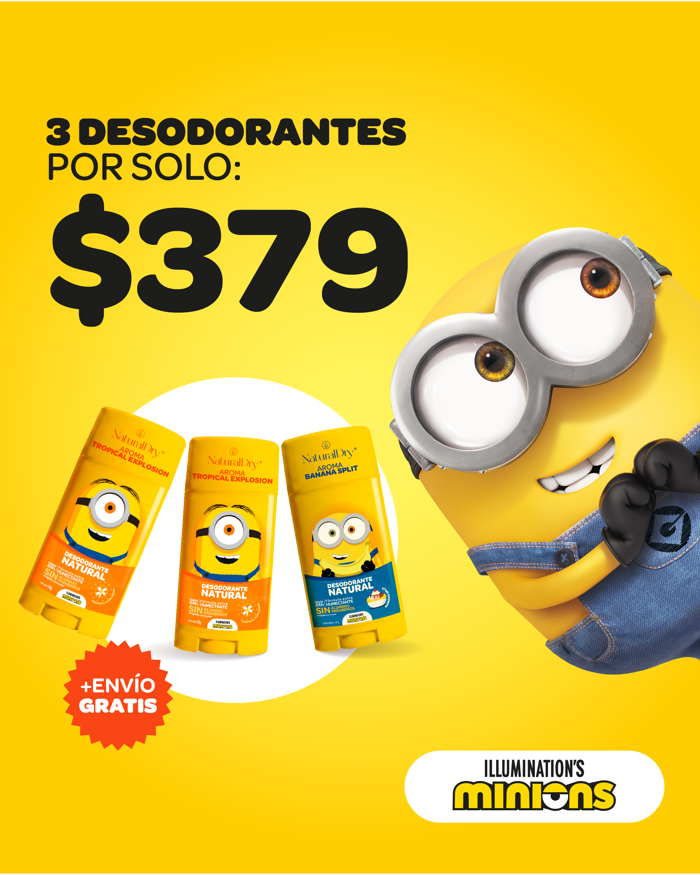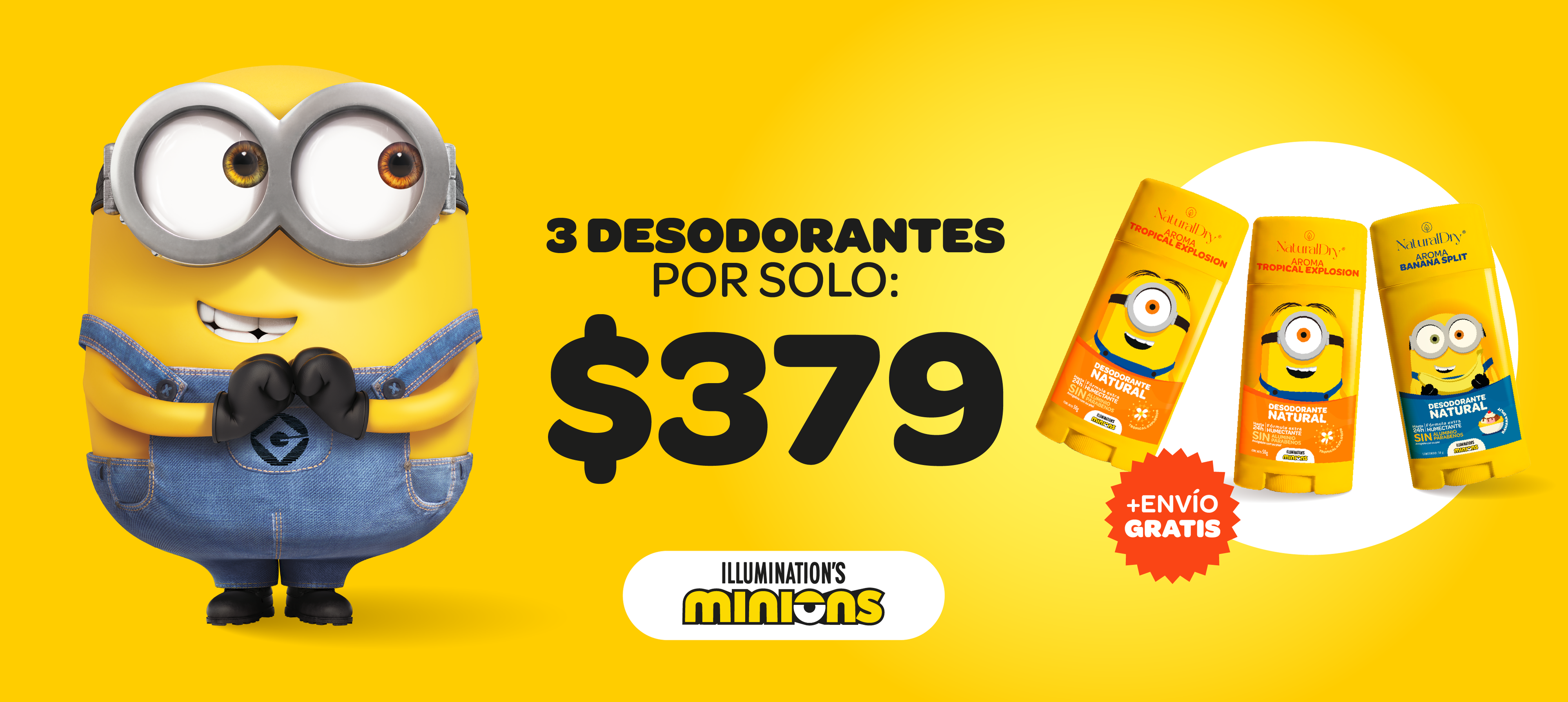 Adquiere 3 desodorantes de Minions y llevatelos por solo $379 + Envío gratis
