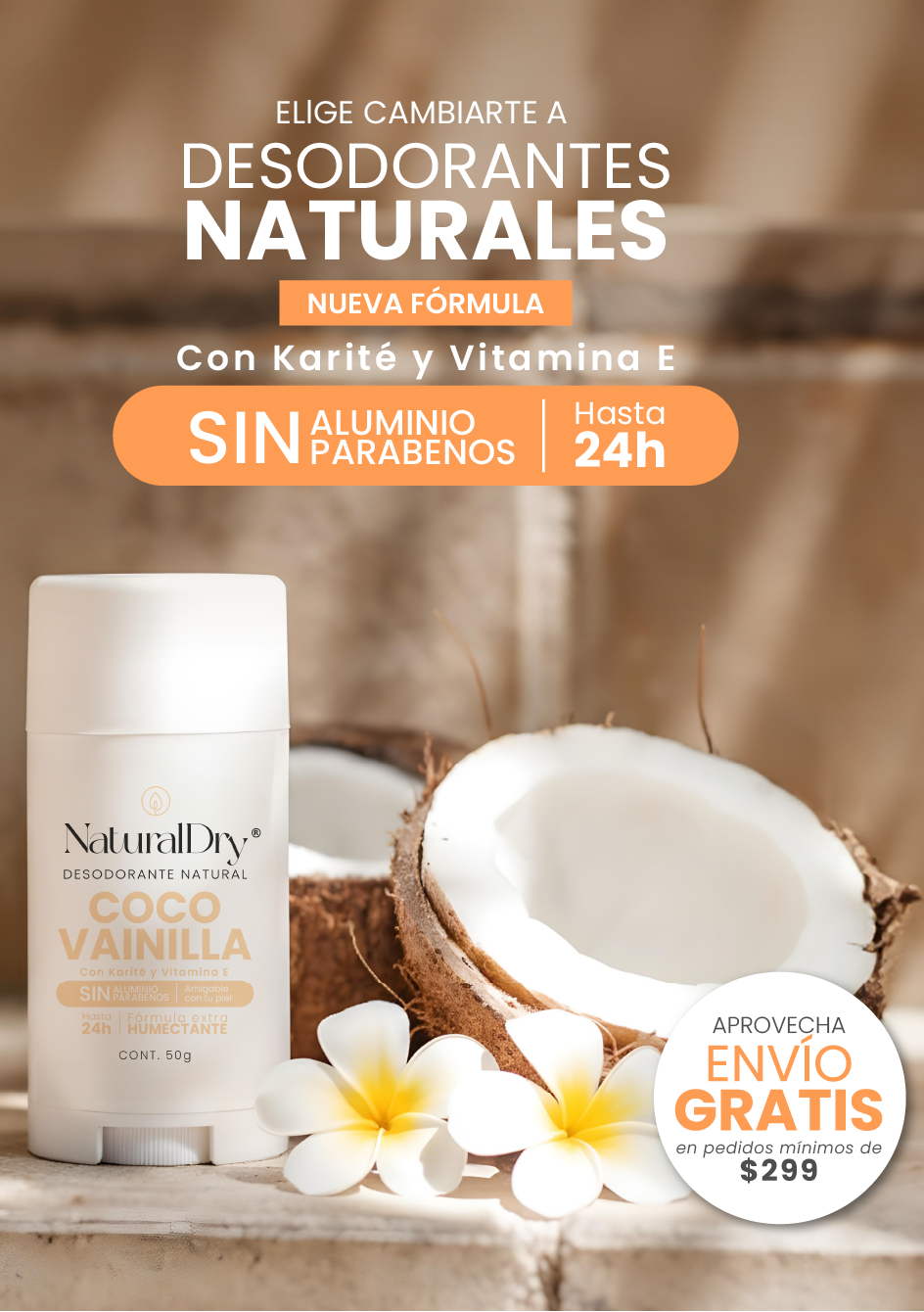 Desodorante natural NaturalDry en barra - Coco-Vainilla- Precio regular