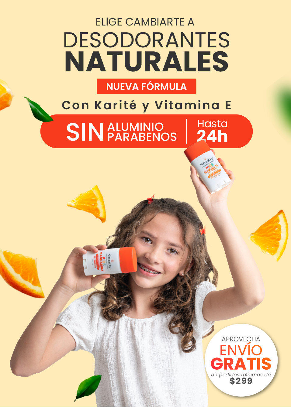 Desodorante natural corporal en barra - niños piel sensible - naranja